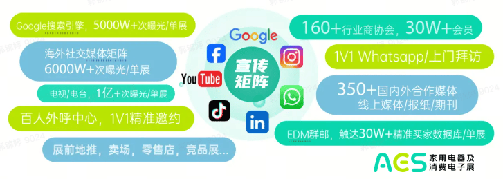 AES家用电器及消费电子展,布局全球多个热门国家和地区,汇聚100,000+业内专业买家,借助数据驱动的数字化专业展,是集海外商机探索■、创新产品出海展示◇■、客商精准配对、商业贸易合作为一体的专业展会平台,助力中国企业出海拓展增量市场。展会涵盖了厨房家电、日用家电、美容家电、家电配件、移动电子○、娱乐消费电子△、电脑周边及电竞、科技产品、车载电子等专业展区★。2025年,AES家用电器及消费电子展将还在越南○▪、印尼、迪拜、沙特、墨西哥、巴西、南非、波兰、印度等全球重点国家市场举办12+场专业3C家电展…。