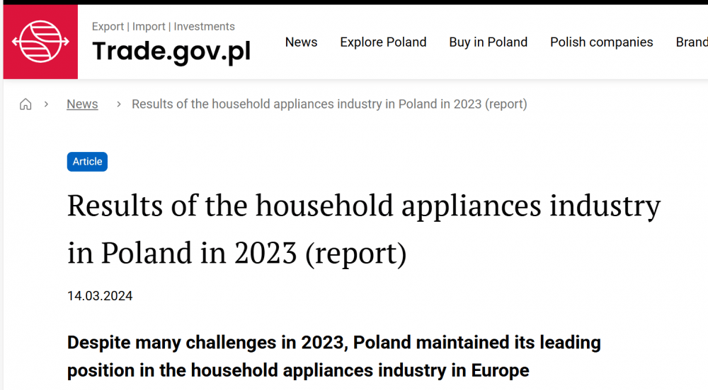 从宏观环境看,波兰近3年来持续通过支持私人消费和经济增长的政策,推动居民购买力和耐用消费品需求逐步恢复,为家用电器等大宗消费品创造了良好的市场基础。随着通胀压力缓解和消费信心回升,家电更新换代需求正在释放,而这一消费端的回暖◁,正好与波兰强大的家用电器产业基础形成共振-▪▷。作为欧洲最重要的家电制造中心之一□○,波兰家用电器行业长期保持领先地位,2023年全国产量约2600万台,其中以大型家电为主,约占欧盟市场40%的份额,形成了高度成熟的渠道网络。消费端的增长为产业提供了持续的内需支撑•◁•,而产业端的规模优势又进一步强化了市场供给能力和价格竞争力,这种▽“内需+制造”的双轮结构■,为波兰家用电器产业的长期发展提供了坚实基础。